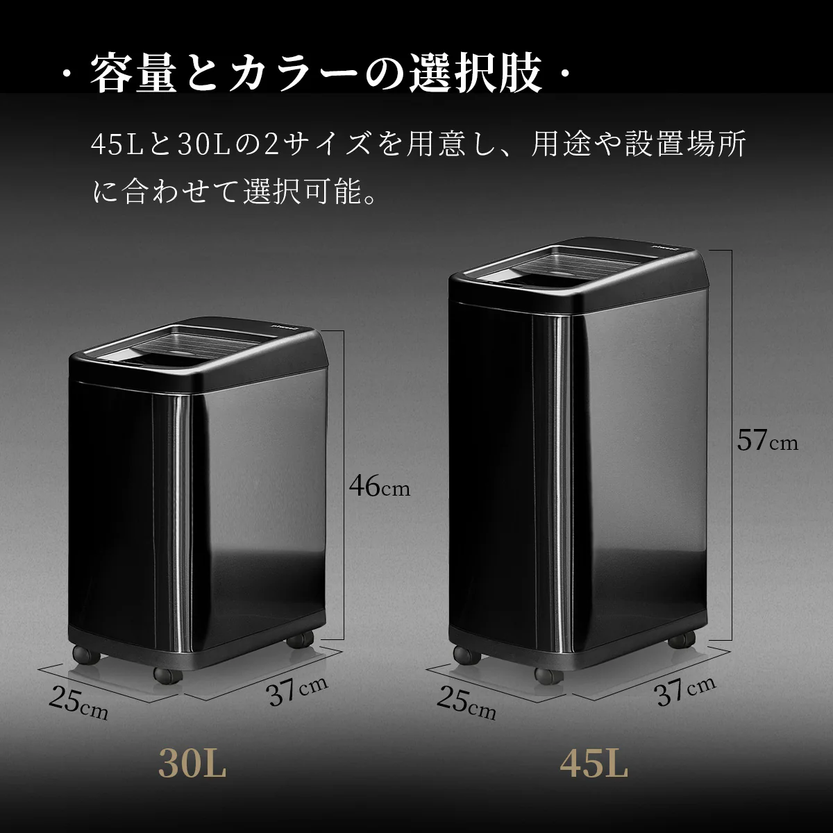 また、Smartownerのゴミ箱には、大容量タイプやスリムに置きやすいタイプも見られます。家族世帯でゴミが多く出るご家庭はもちろん、一人暮らしや二人暮らしでも、部屋の広さや生活動線に合わせて選びやすいのはうれしいポイントです。センサー式やペダル式、ふた付きモデル、45L・50Lクラスの容量感などが確認できます。