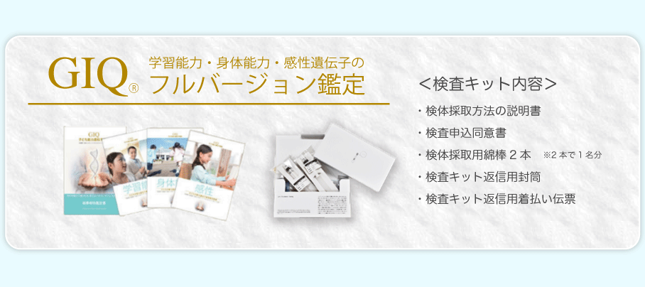 子どもの可能性を、親の勘だけでなく、別の視点からも見つめてみたい方は、GIQ子ども能力遺伝子検査を選択肢のひとつとして検討してみてはいかがでしょうか。